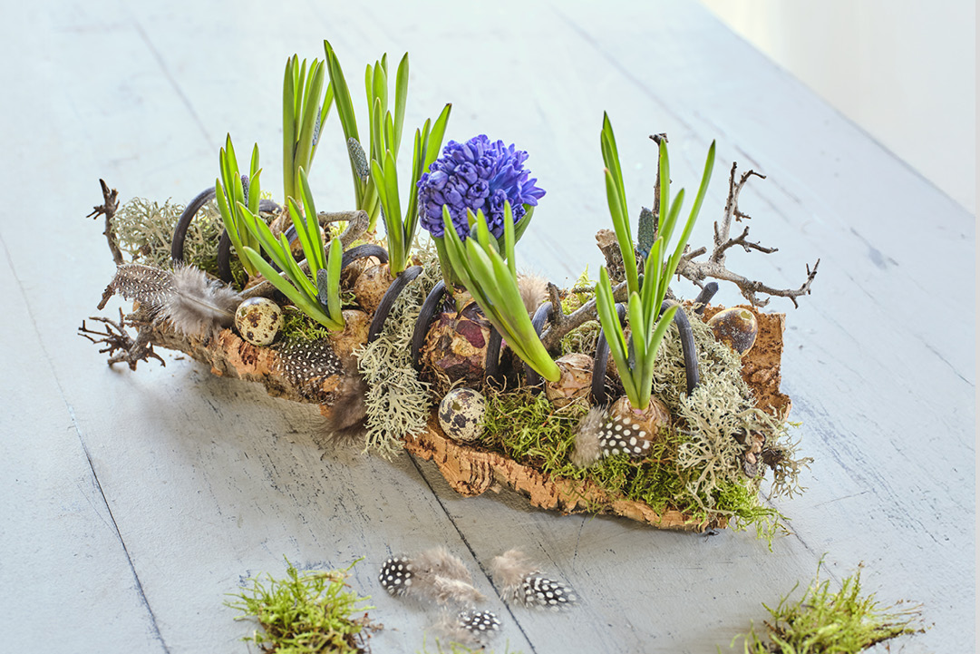 Mit Traubenhyazinthen, Hyazinthen und natürlichen Deko-Elementen verwandelst du ein Stück Kork in eine Frühlingsüberraschung. Wenn die Traubenhyazinthen ihre Köpfe zeigen und die Hyazinthen frisch duften, weißt du: Der Frühling ist fast da! Dauer: 60 bis 90 Minuten. Kosten: € 25.- pro Person, inklusive aller Materialien.
