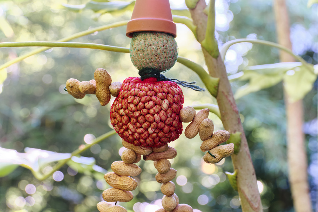 Bastel einen Erdnuss-Hänger für Vögel! Gartenvögel lieben Erdnüsse, weil sie fett- und eiweißreich sind. Mit diesem Vogel-Freund hilfst du ihnen durch den Winter. Häng ihn in einen Baum, einen Busch oder an die Hecke. Für Kinder ab 5 Jahren. Kosten je Kind 4,50 Euro inkl. aller Materialien.